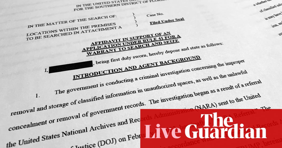 Trump Search Affidavit Reveals Potential For Evidence Of Obstruction At Mar A Lago As It Happened Us Politics The Guardian